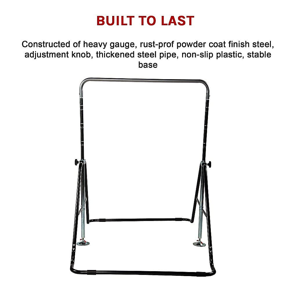 No worries about safety with this equipment. Its triangular structure minimises wiggling and swaying to provide the ultimate in stability. It's easily adjustable to four different heights to suit kids of all ages. All you need to do is to fasten the knob or pull on the quick-adjust knobs on both sides to change the heights. A spin-lock mechanism allows you to adjust in seconds.