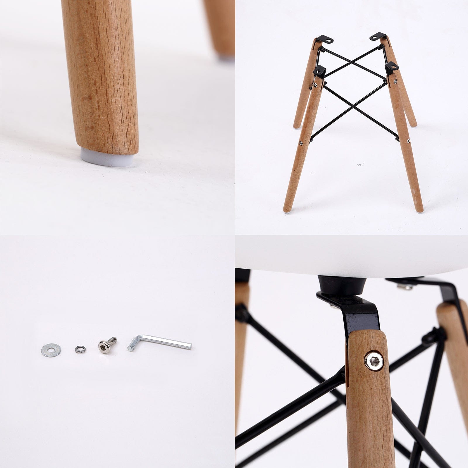 The chair seat is made of high-quality polypropylene plastic, providing maximum durability and comfort. Besides, the beech wooden legs with the extra metal cross frame will add extra strength to the chair, giving it an extra stability.