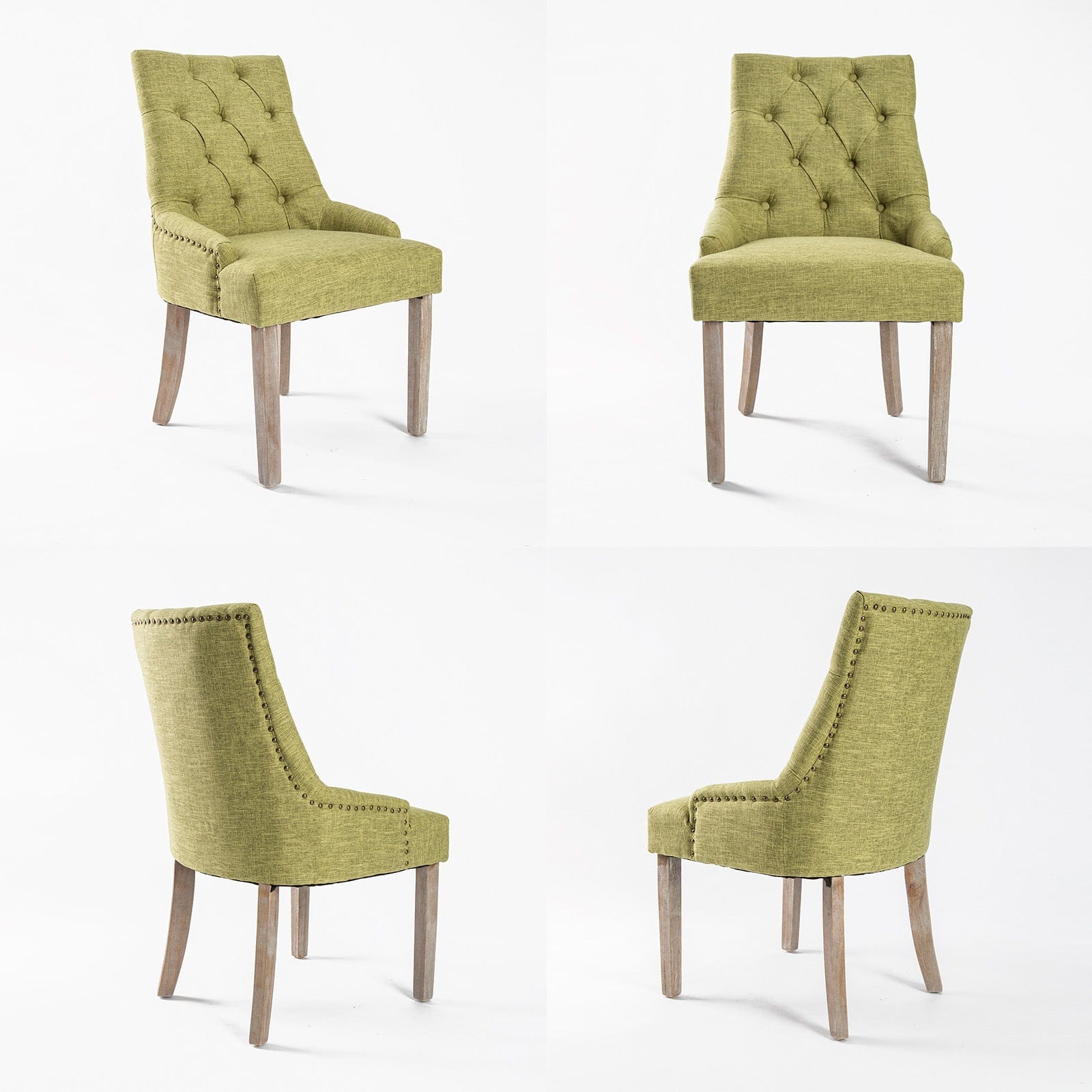 La Bella 4 Set French Provincial Dining Chair Amour Oak Fabric Studs Retro - Green