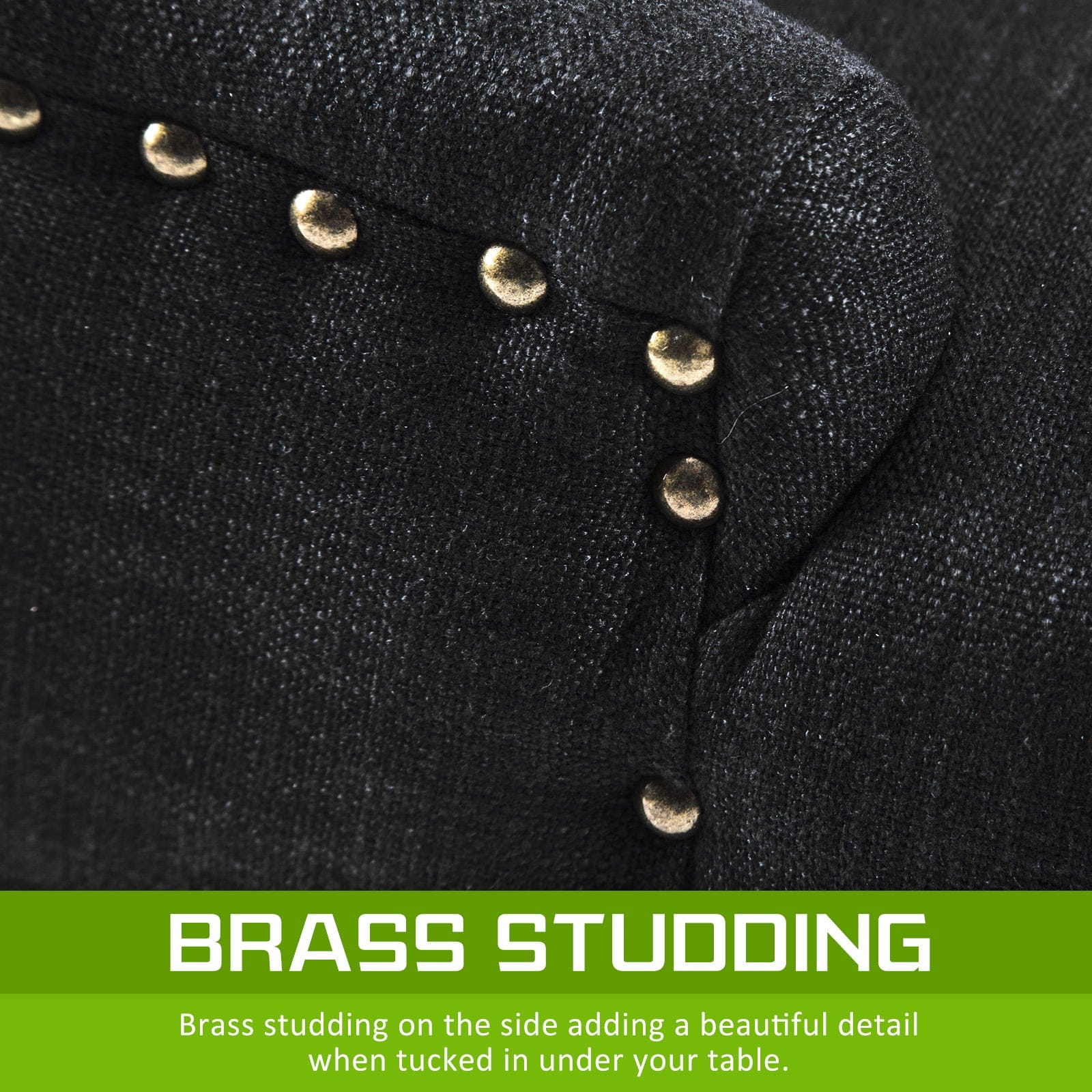 Upholstery Fabric: High-quality linen fabric with brass studs