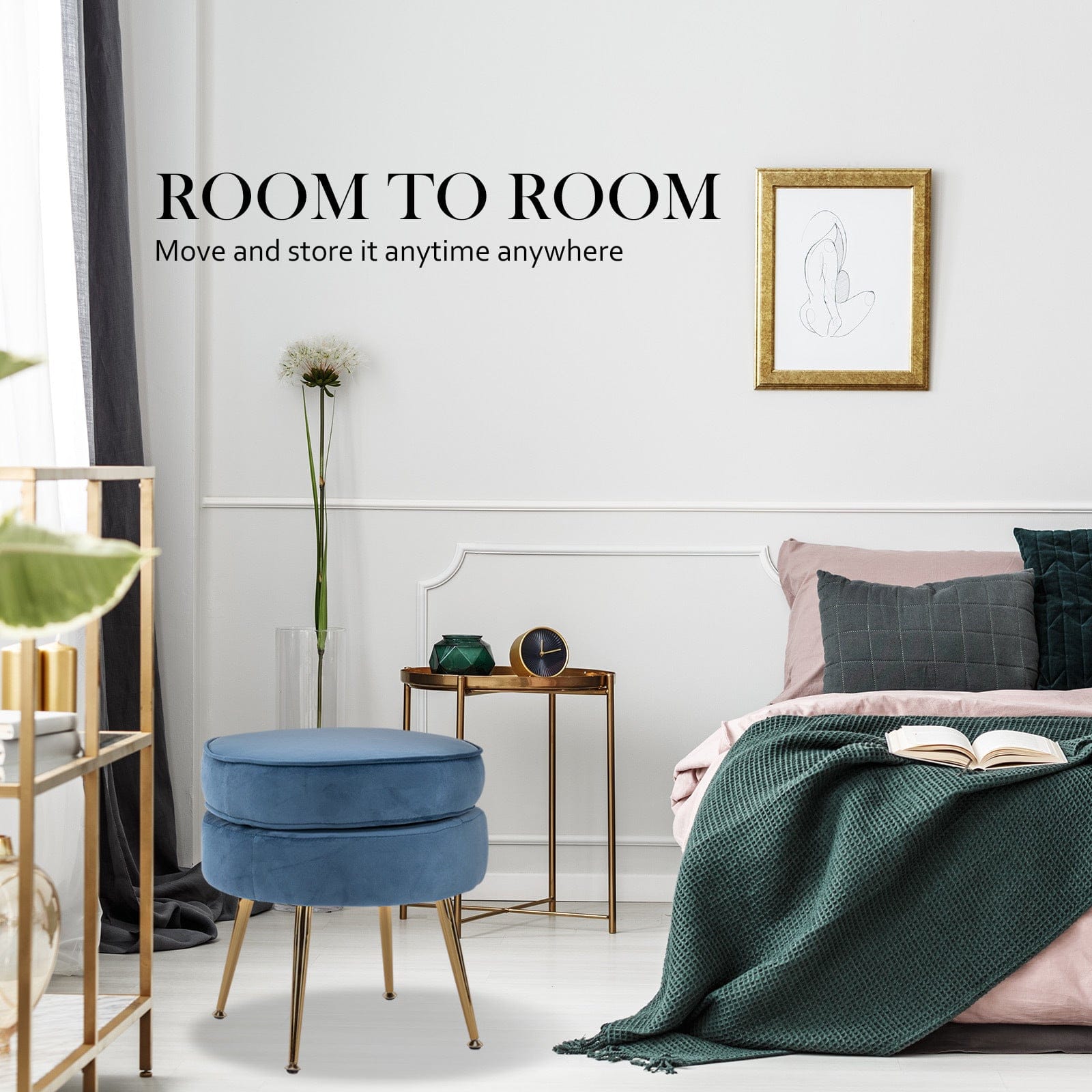 Ottoman Foot Stool Velvet Fabric Metal Leg Round NAVY BLUE