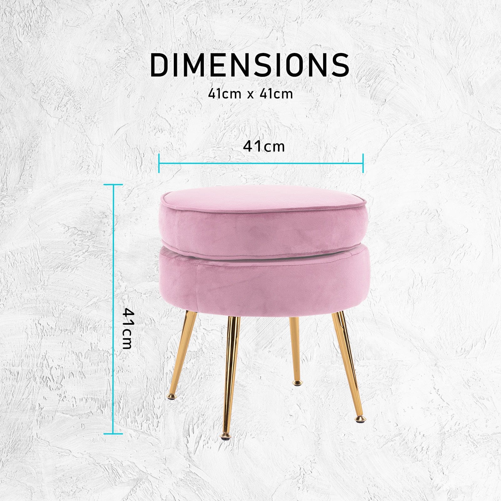 Ottoman Foot Stool Velvet Fabric Metal Leg Round PINK