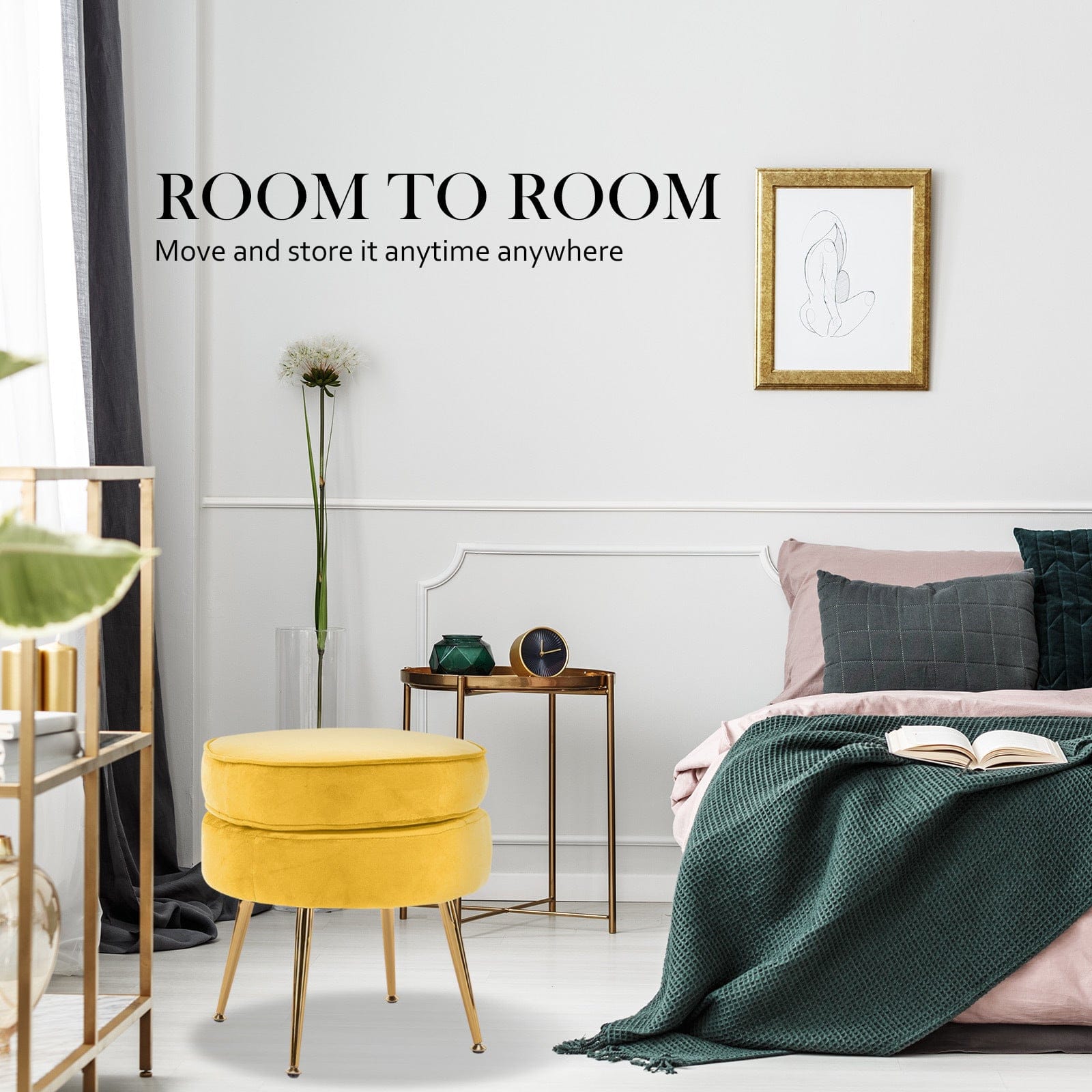 Ottoman Foot Stool Velvet Fabric Metal Leg Round YELLOW