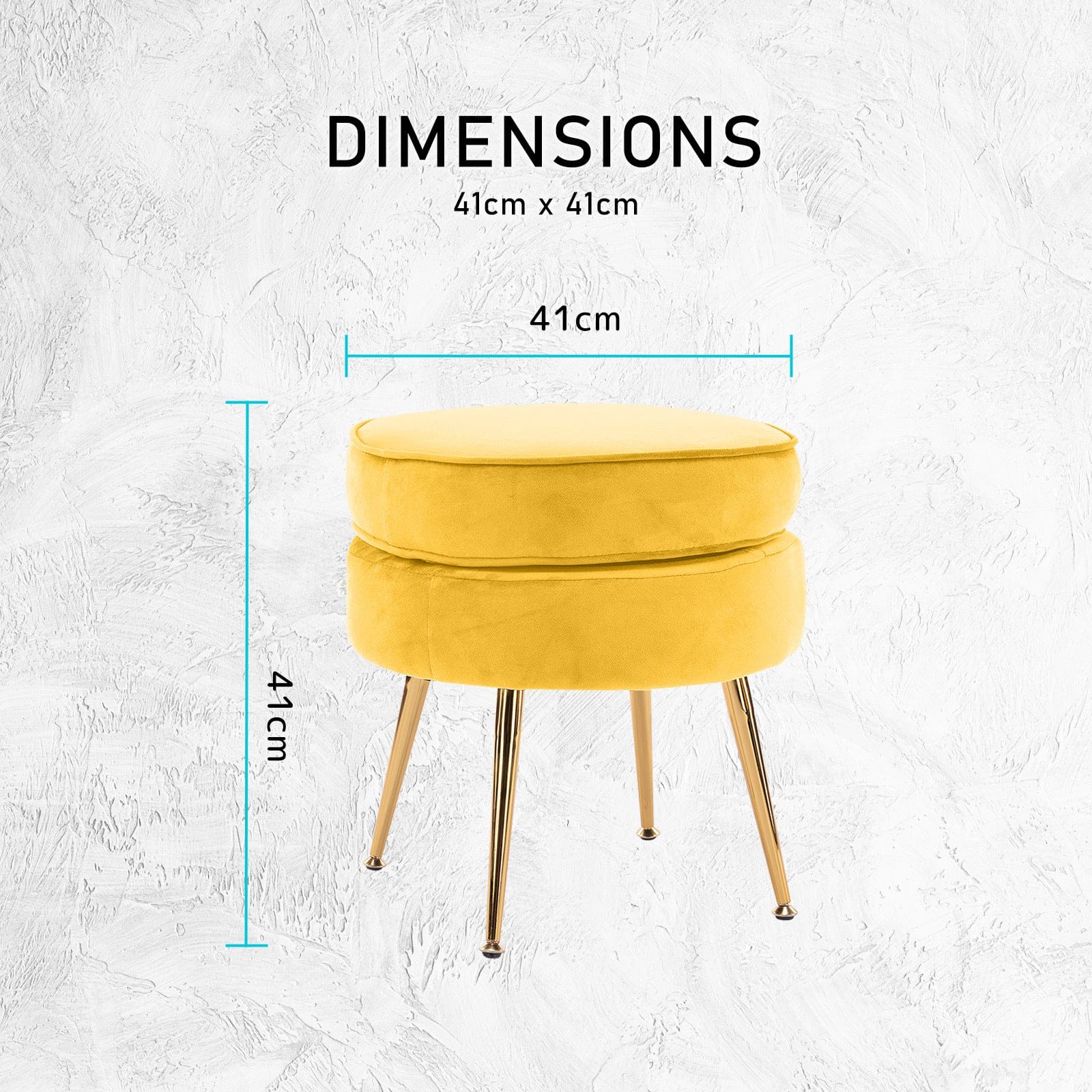 La Bella Ottoman Foot Stool Velvet Fabric Metal Leg Round - Yellow