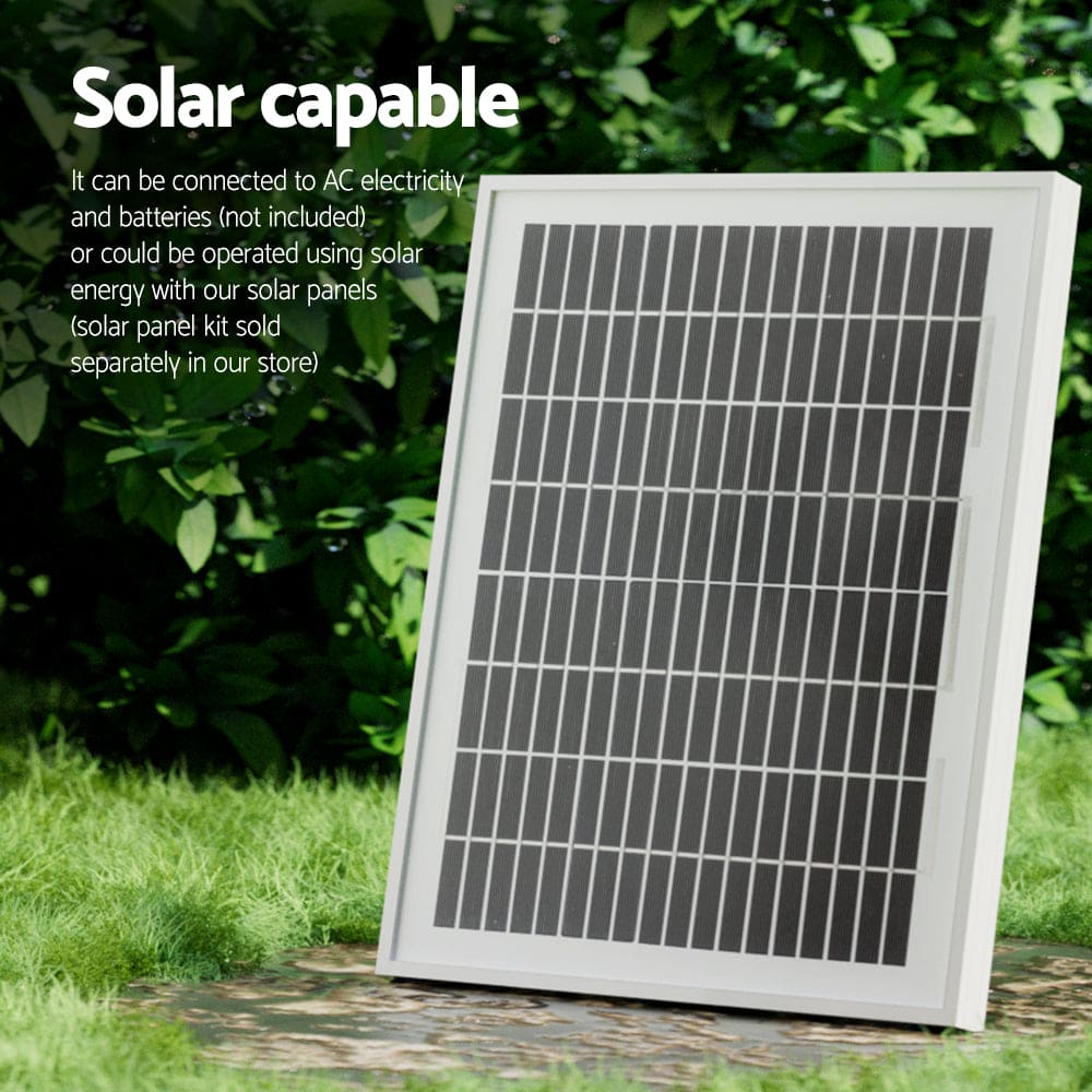 Ditch the manual gate duty with this secure and convenient solar-powered automatic gate opener. This system can handle heavy gates up to 10 meters long and weighing 600kg. It operates smoothly with gentle start and stop features, and prioritises safety with automatic stop or reverse if it detects an obstruction. No worries about power outages either, as an emergency release key allows manual gate operation. For added convenience, you can program the auto-close feature between 0-99 seconds. The weather and dust resistant control box ensures reliable operation, and two programmable remote controls come included. This versatile system works with various gate types, from steel and wood to vinyl, in panel, tube, or even chain-link styles.