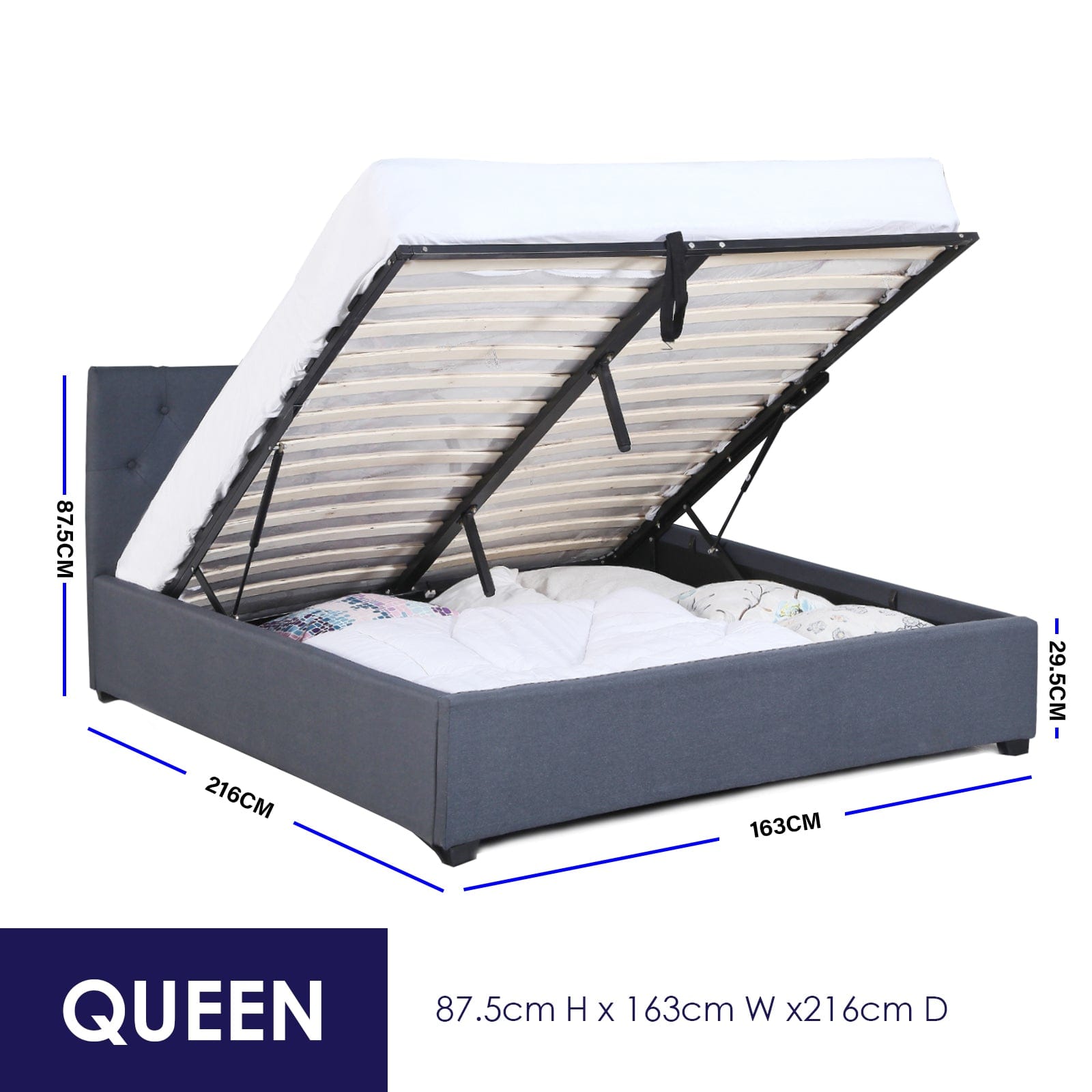 Milano Capri Luxury Gas Lift Bed Frame Base And Headboard With Storage - Queen - Charcoal