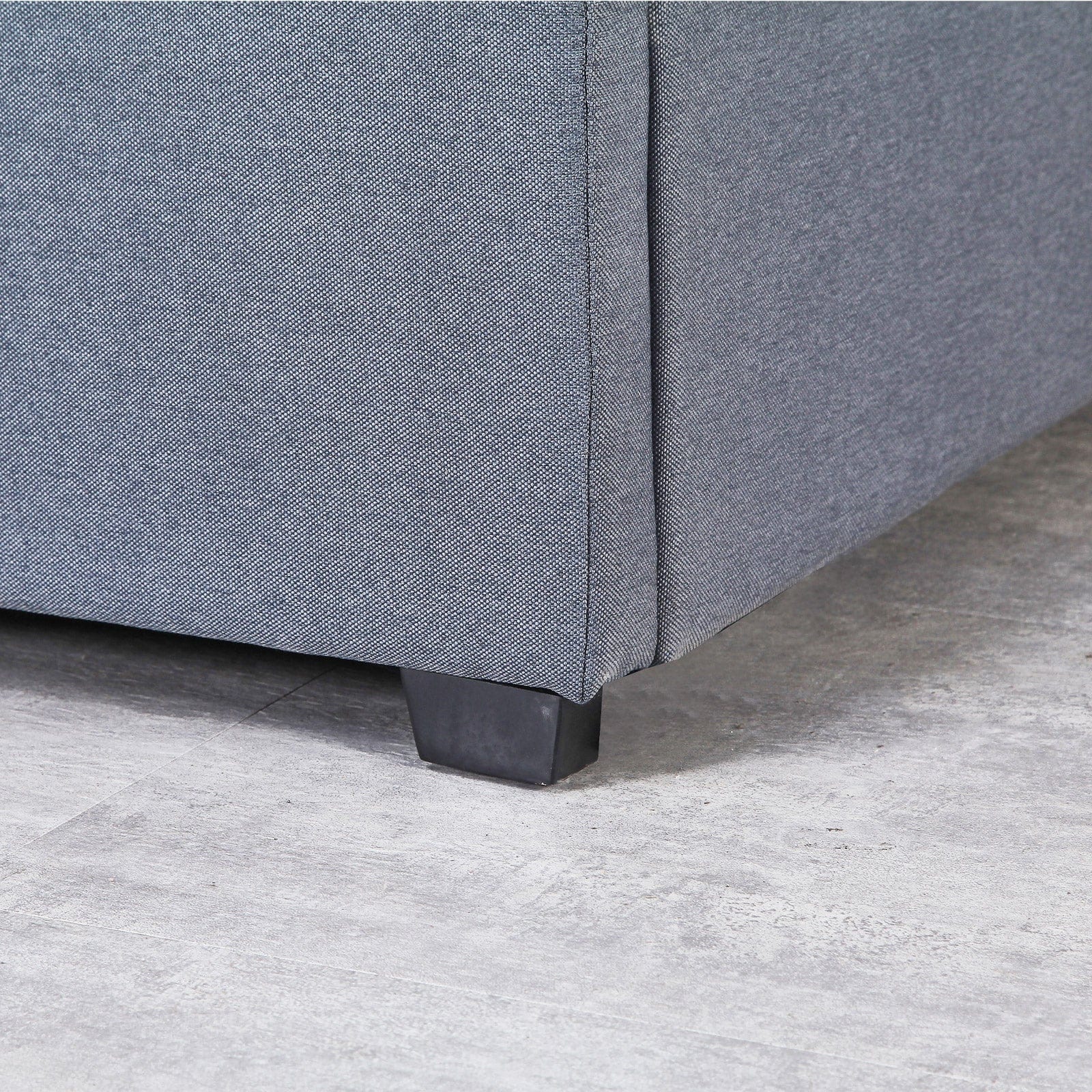 This bed frame and the complementary Scandinavian tufted headboard is encased in a high-quality fabric upholstery with clean and smooth edges that complement the modern design and adds another layer of comfort to the bedroom experience.