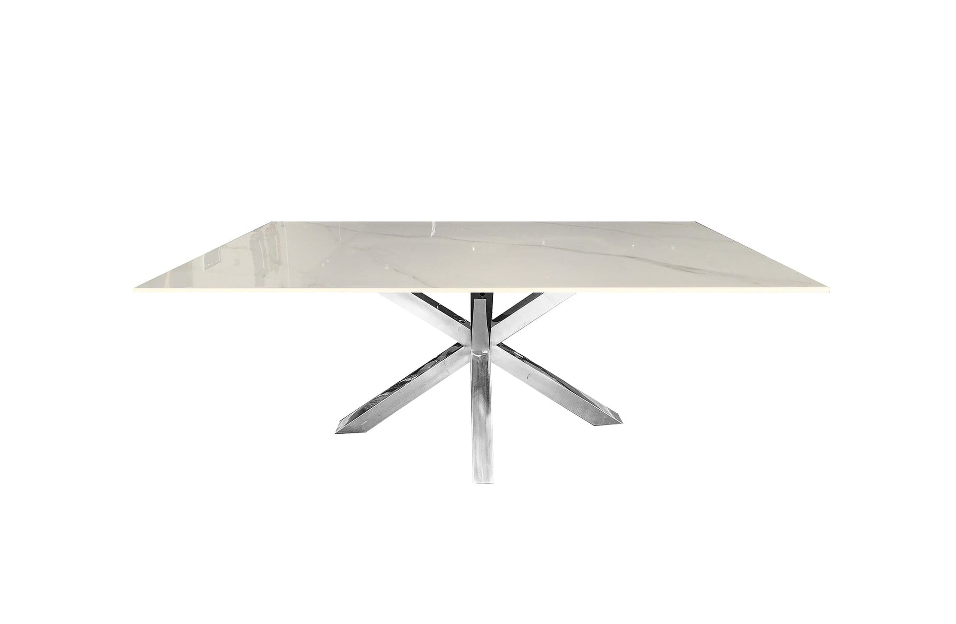 Miles Silver With White Marble Dining Table - 90cm x 180cm