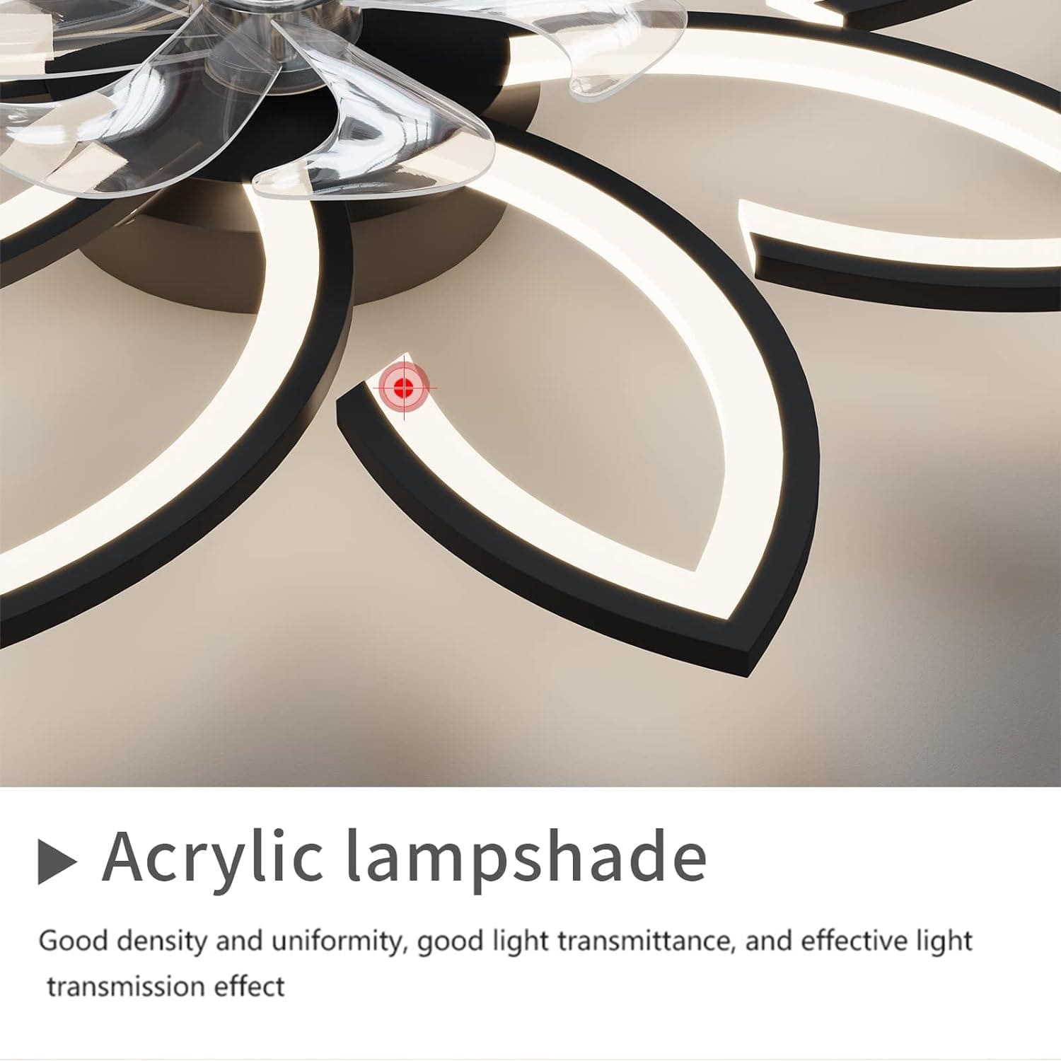 Modern Ceiling Light Fan, Low Profile, 6 Wind Speed, 3 Color (90cm, Black)