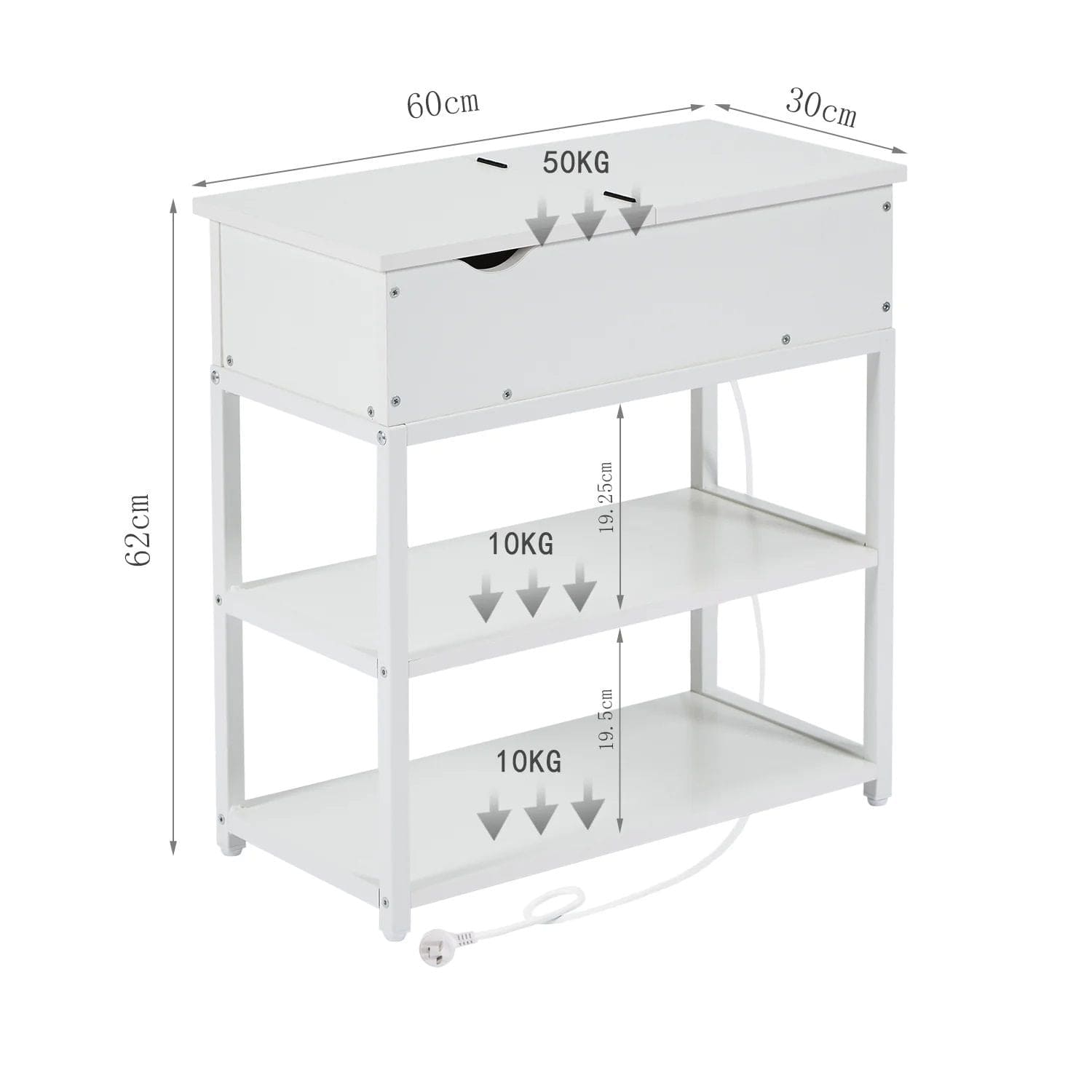 - This white table is the perfect solution for keeping your space tidy. Its flip-top design cleverly hides cables, while its versatile design makes it ideal for any room. Use it as a side table in the living room, a sleek console in the hallway, or a smart bedside table.