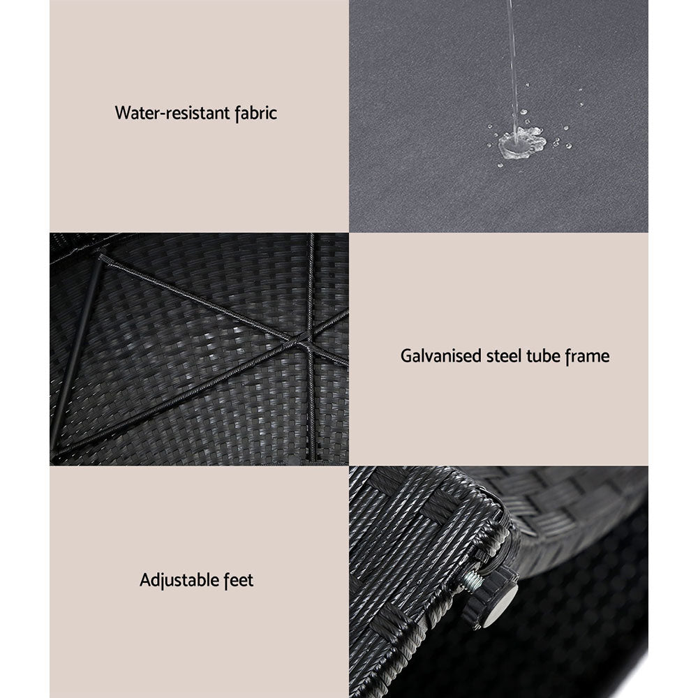 Gardeon Sun Lounge Setting Wicker Lounger Day Bed Patio Outdoor Furniture Black