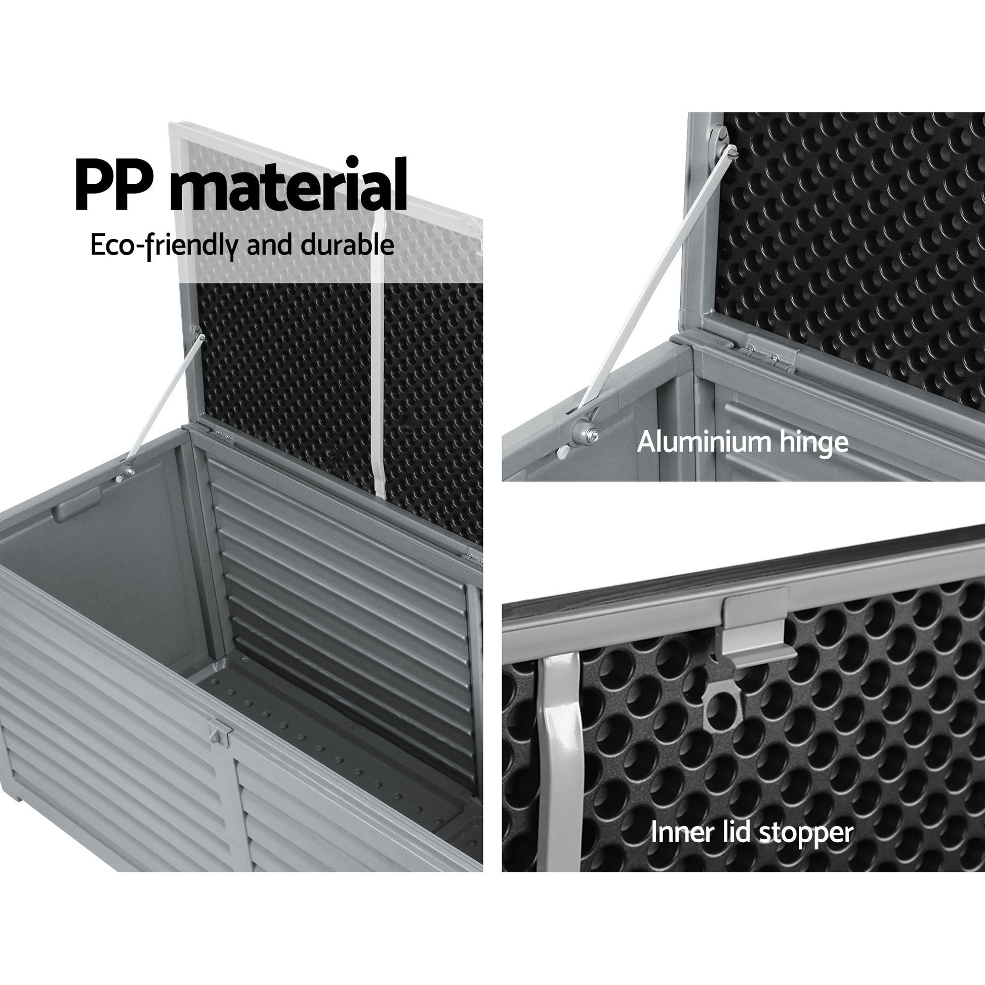 Gardeon Outdoor Storage Box 390L Container Lockable Garden Bench Tools Toy Shed Black