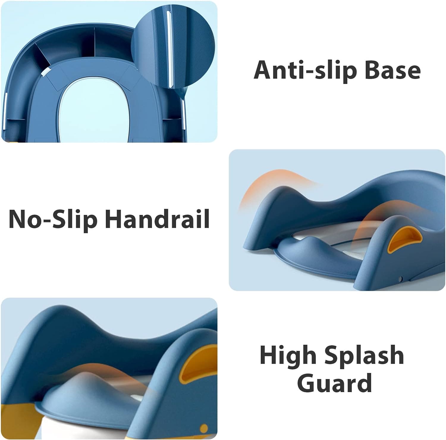 - Keep your little one safe and secure with our non-slip rubber pads. Our wide ladder fits firmly to the toilet at the back and bottom, providing a stable and secure experience for your baby. With our ladder, your little one can easily turn around, giving you peace of mind that they�re safe and secure. Make this trustworthy companion part of your parenting routine today.