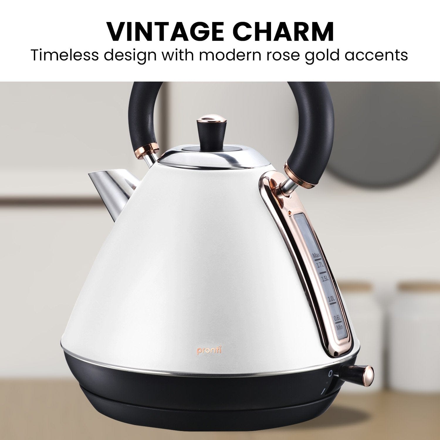 Pronti 1.7l Rose Trim Collection Kettle - White