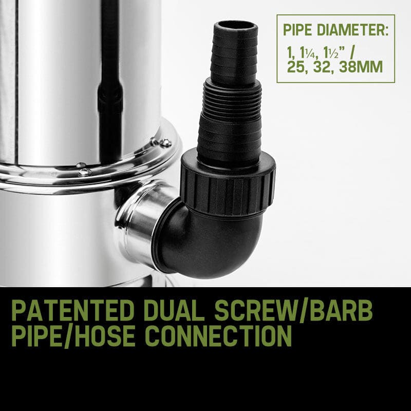 It's fully submersible up to a depth of 8 metres and waterproof sealed. The pump amazingly passes 35mm solids such as leaves, pebbles, and other debris without clogging. The PRD-M6 brings leaps and bounds in power from previous models, featuring a 2000W motor. As a result, it boasts an incredible 24,000 L/h pump rate with an equally impressive 12.5m delivery height. It also features fully automatic operation via the built in float switch turning the pump on and off.