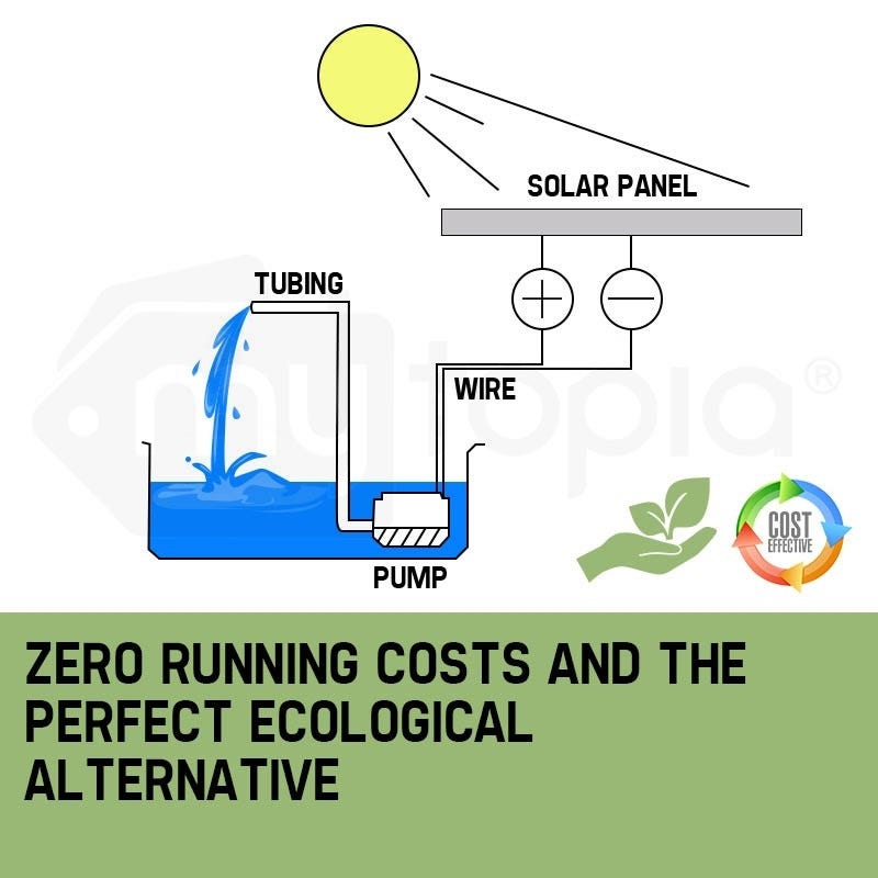 The Protege SFP series solar fountain pump kit comprises of a Premium Polycrystalline Solar Panel and a full length 5 metre cable meaning you don't have to mount the solar panel in the pond! The Protege brand is synonymous with quality and product performance, hence on testing this product in a bucket of water, we ended up soaked! In fact we were so impressed by its features, 3 individual spray attachments, adjustable height, quality build and the electronic smarts to function well in cloudy conditions, we offer a full 12 months warranty as we're sure this will be the unit still powering on in years to come.