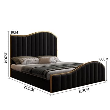 Queen Size Black Velvet Fabric Golden Metal Storage Elegant Luxury Bedframe