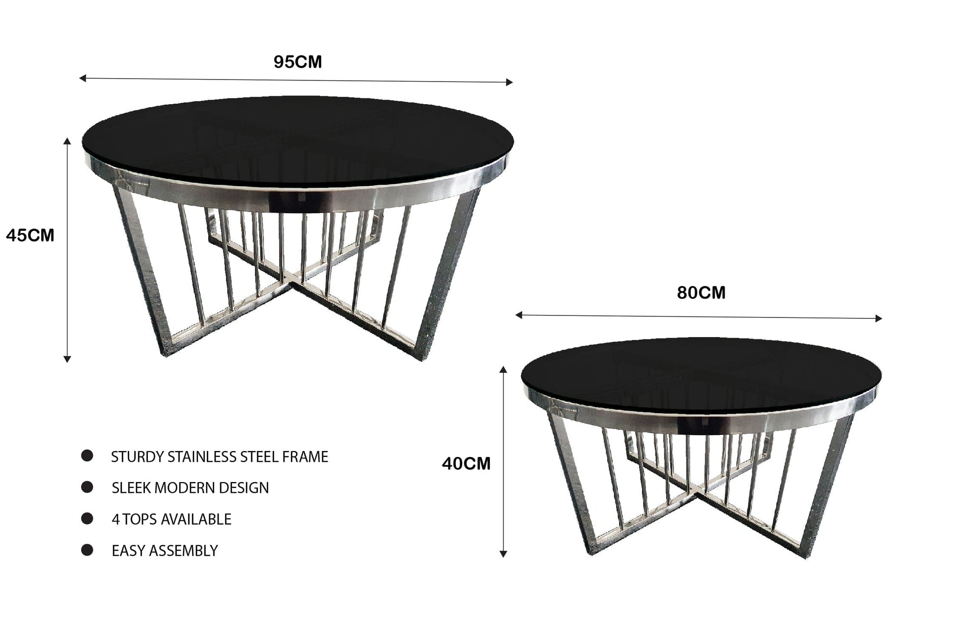 Salina Coffee Table 80cm Silver Base - Black Glass