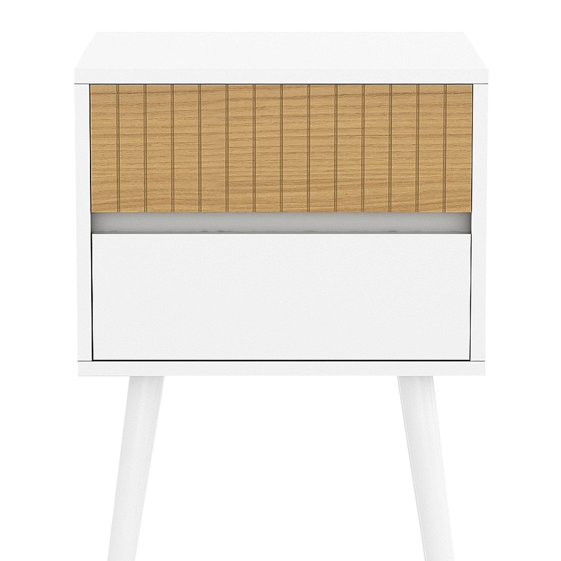 Sarantino Clio Bedside Table Night Stand - White/natural