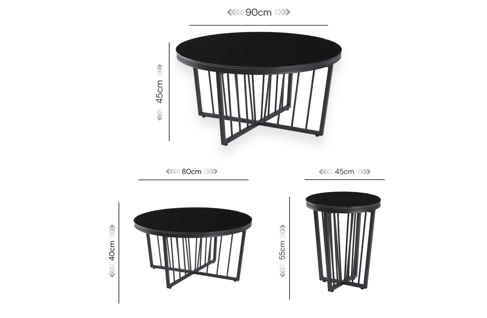Add a touch of elegance to your living room or bedroom with the Salina Coffee Table in black. This versatile piece of furniture is available in a metal black frame with a tempered glass top.