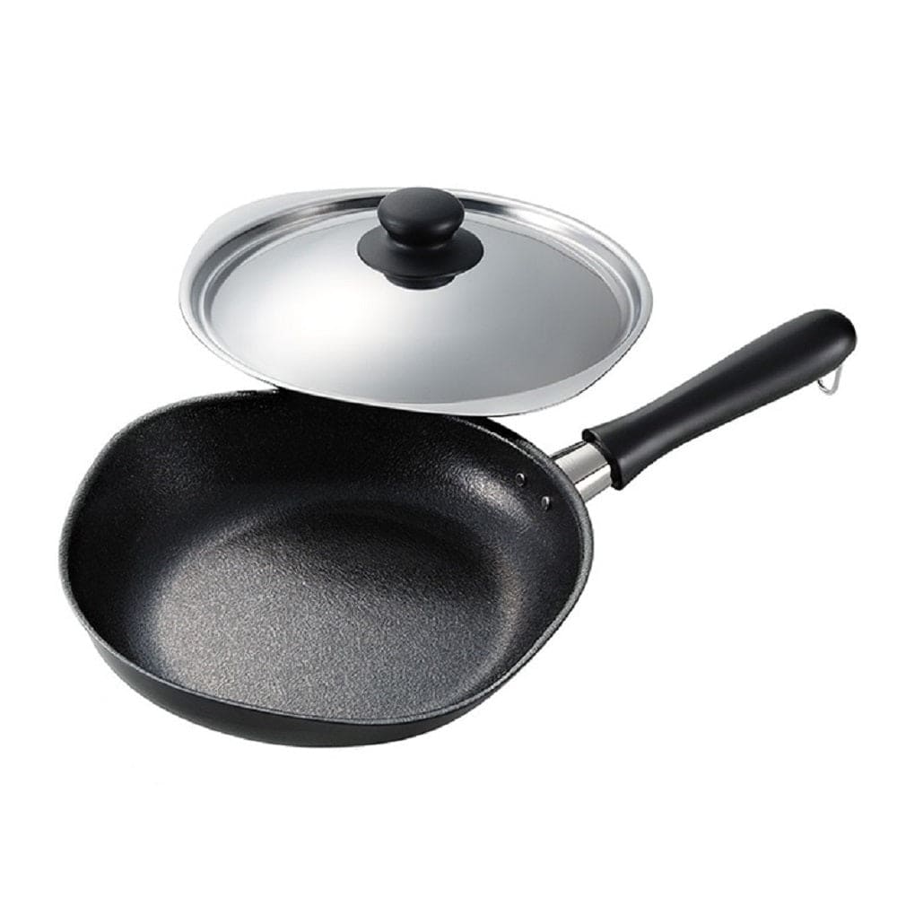 Sori Yanagi Japanese Pure Iron Frying Pan Skillet with Stainless Steel Lid