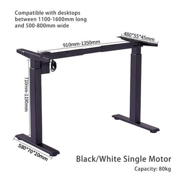 Motorised Height Adjustable Desk Single Motor: 71-119cm, Capacity: 80kg