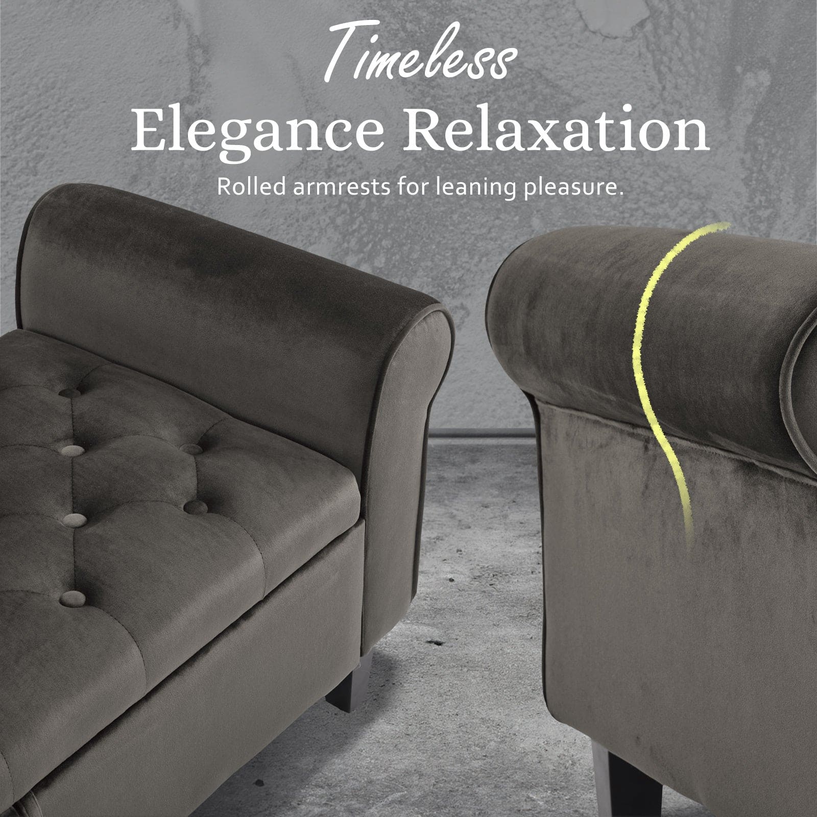 Meet our Velvet Ottoman Storage with Rolled Armrest - a chic and useful addition to your living space. Covered in soft velvet and cushioned with comfy foam, it's a cozy seat with style. Supported by strong wooden legs, this piece is a perfect blend of classic and robust design.