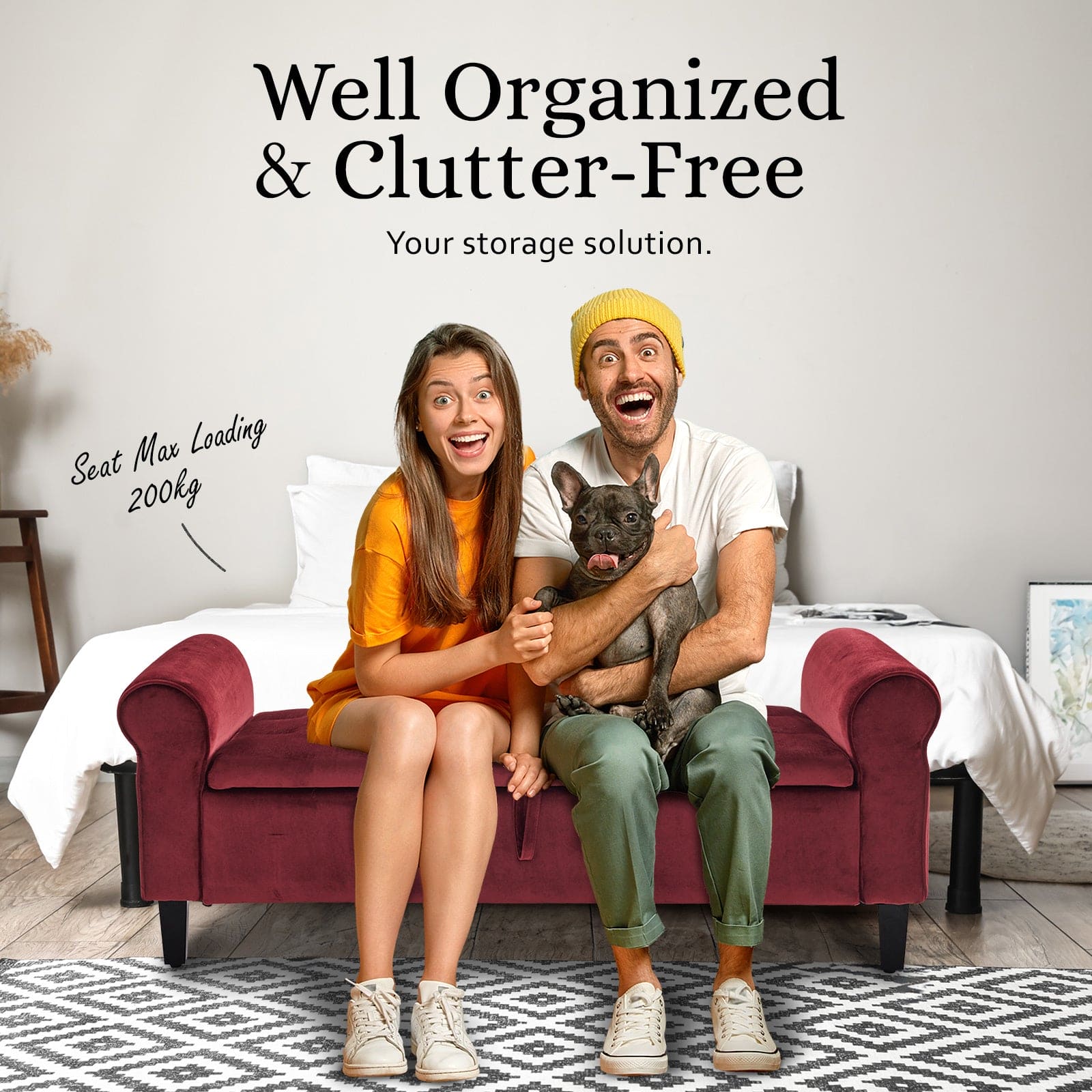 Lift the lid, and voila! You've got a roomy storage space inside - great for keeping blankets and pillows neat and tidy. Putting it together is a breeze, and the wooden legs bring a touch of warmth to the design.