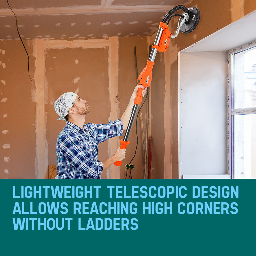 High ceilings are in style, and many homes and commercial properties are reflecting this trend. The New Unimac Dustless Drywall Sander can eliminate the need for dangerous ladders. Equipped with a telescopic handle, Unimac Dustless Drywall Sander will extend up to 1.83m into high corners. No more going up and down a ladder throughout your project.