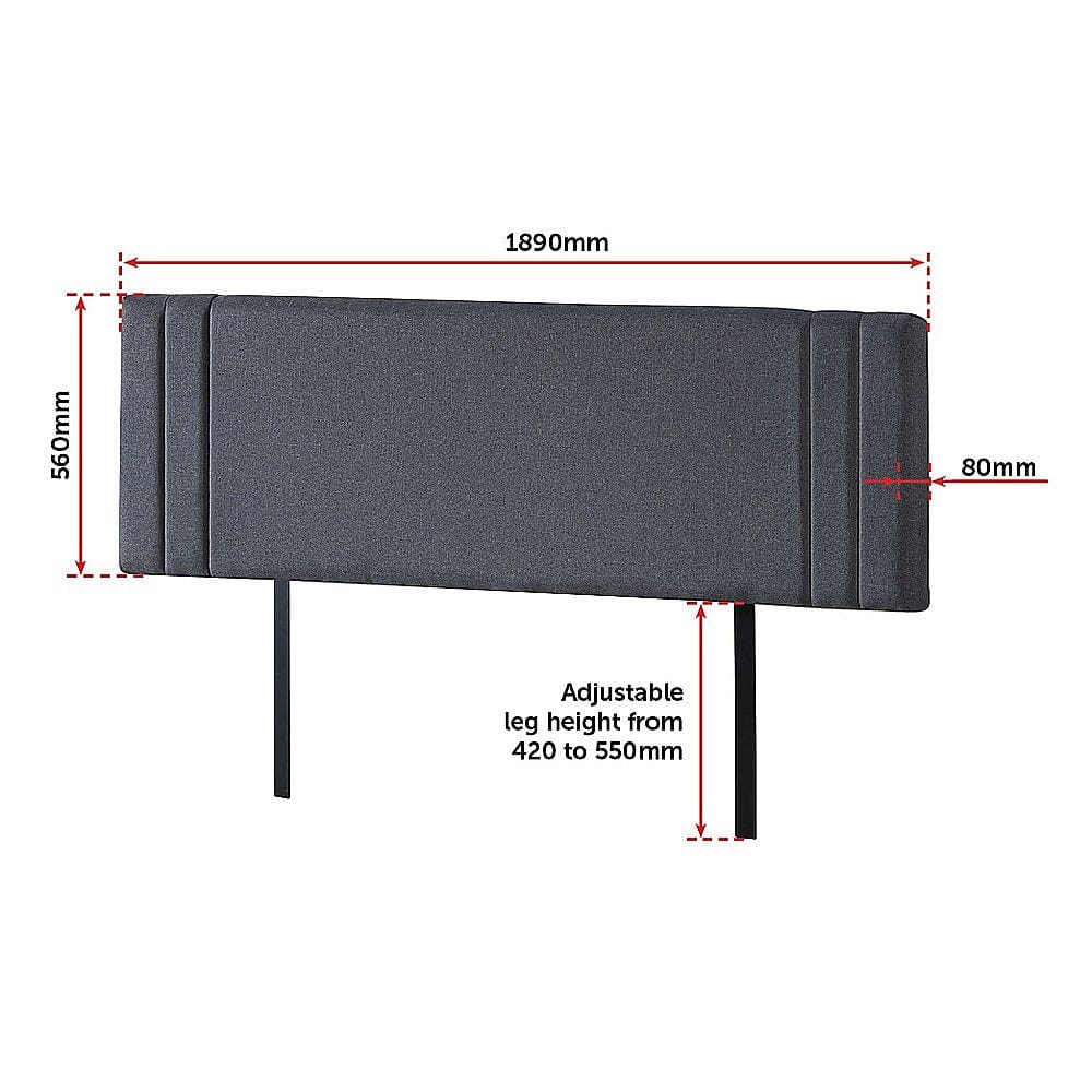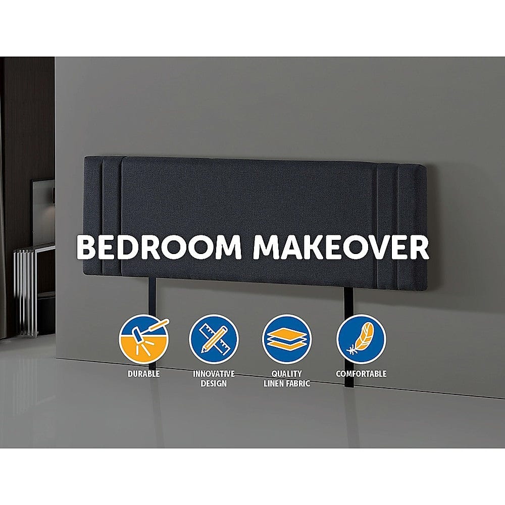 Linen Fabric King Bed Deluxe Headboard Bedhead - Grey