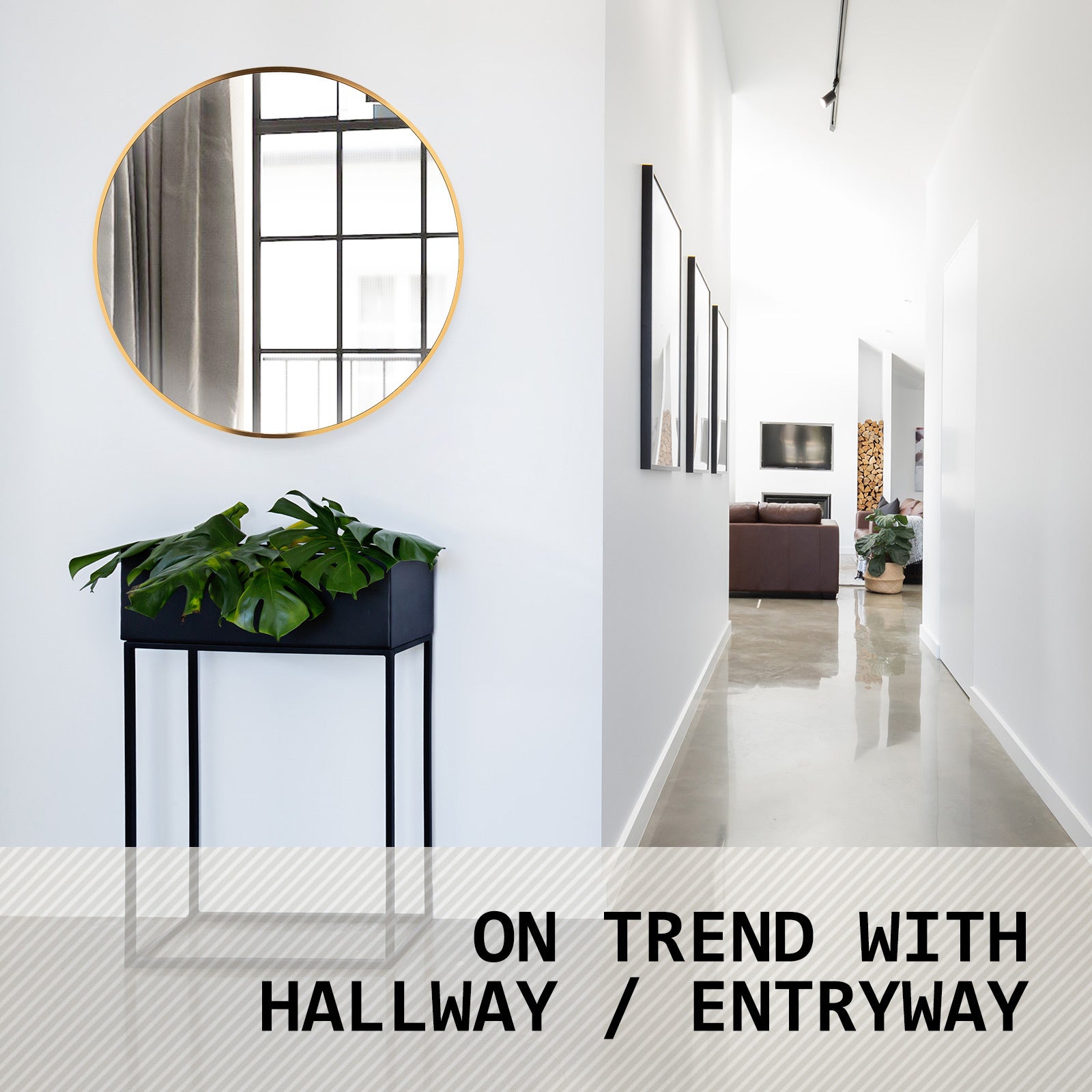 The round mirror is modern and clean in design and comes with a 3.9cm thickness minimalistic aluminum frame that is sure to capture the attention of all. Plus, its curved lines all around will become a central focal point in any room which makes spaces feel more inviting and relaxing.