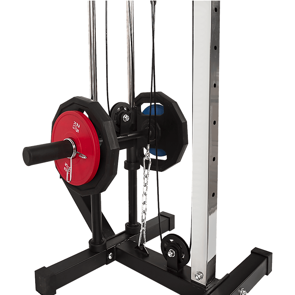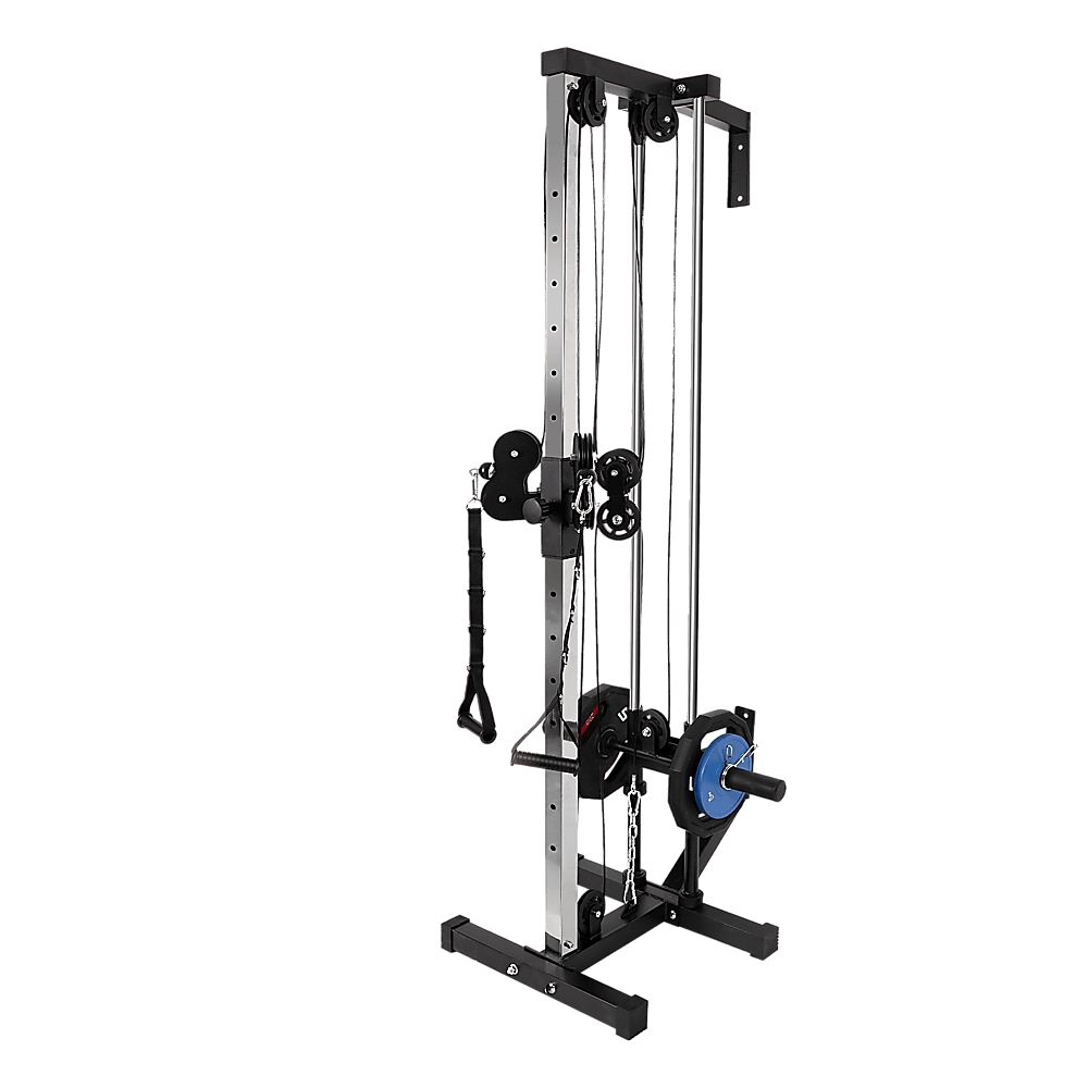 Made from strong, steel frame with a protective powder-coated finish that fends off scratches and rust, this cable tower is equipped with two premium pulleys that can be effortlessly adjusted to varying heights, facilitating a wide spectrum of exercises, from cable crossovers to lat pulldowns.