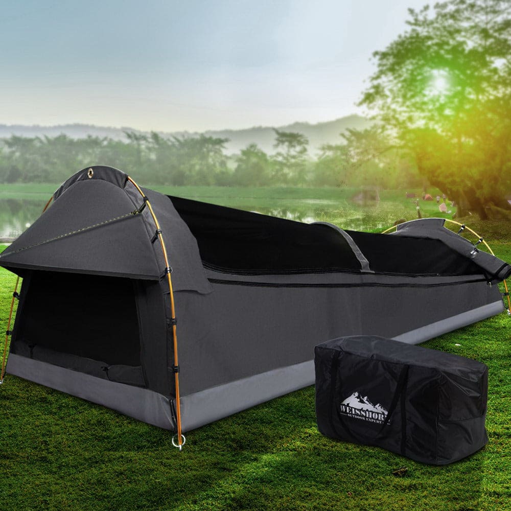 Weisshorn Double Swag Camping Swags Deluxe Canvas Tent Dark Grey