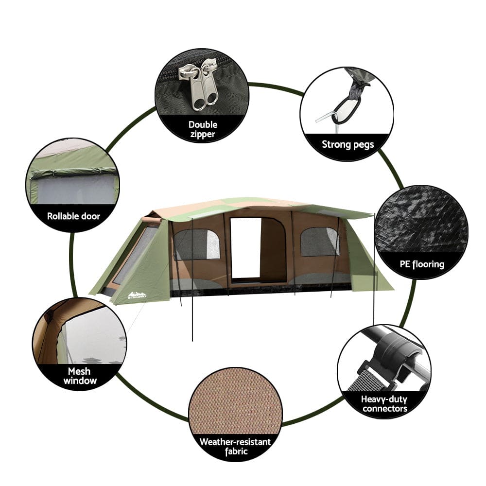 Weisshorn Instant Up Camping Tent 10 Person Outdoor Family Hiking Tents 3 Rooms