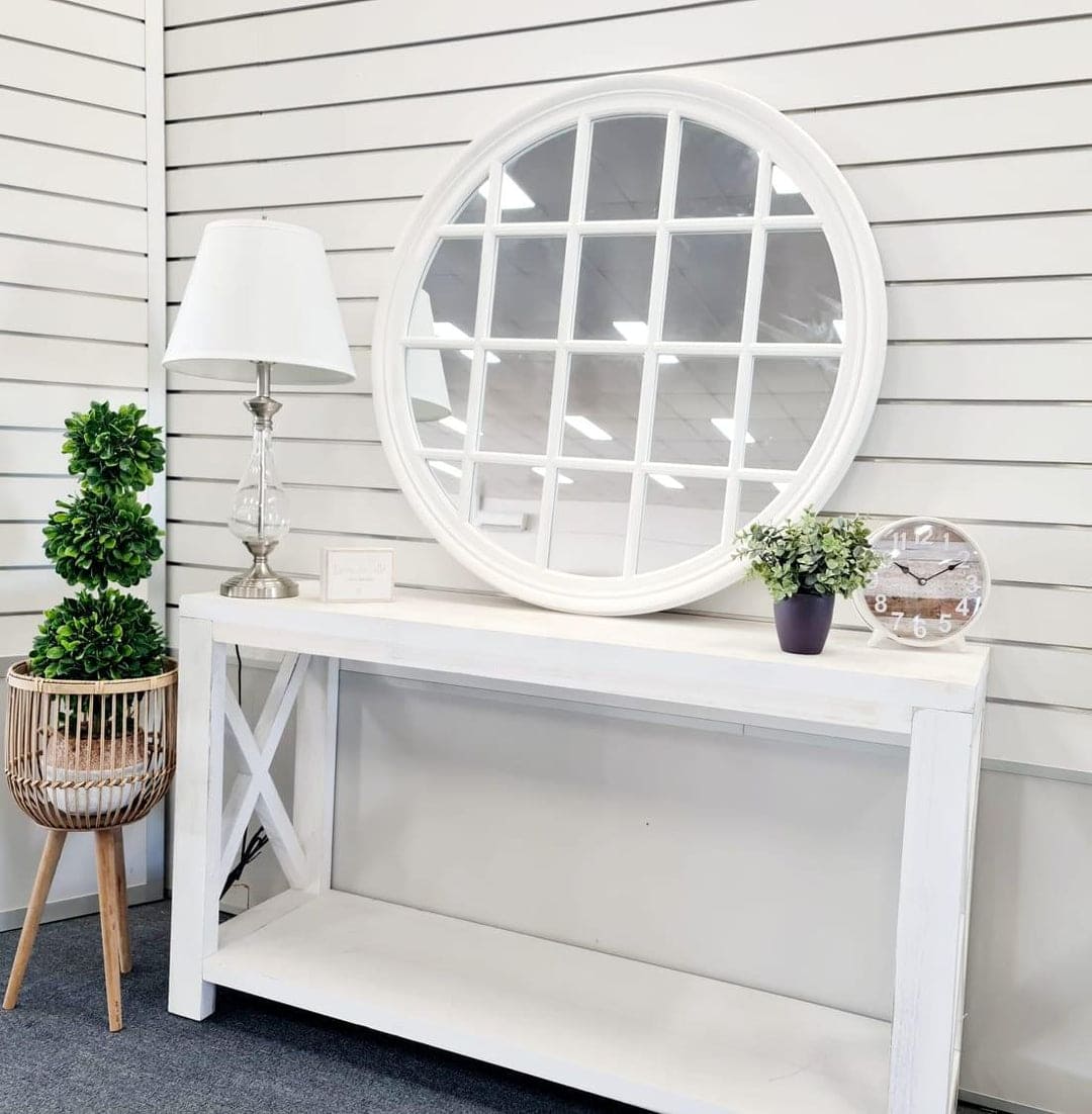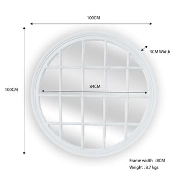 The Window Style Mirror - White Circle 100cm is a beautiful and unique addition to any home decor. The mirror measures 100cm and is made from high-quality materials, including wood and mirror.