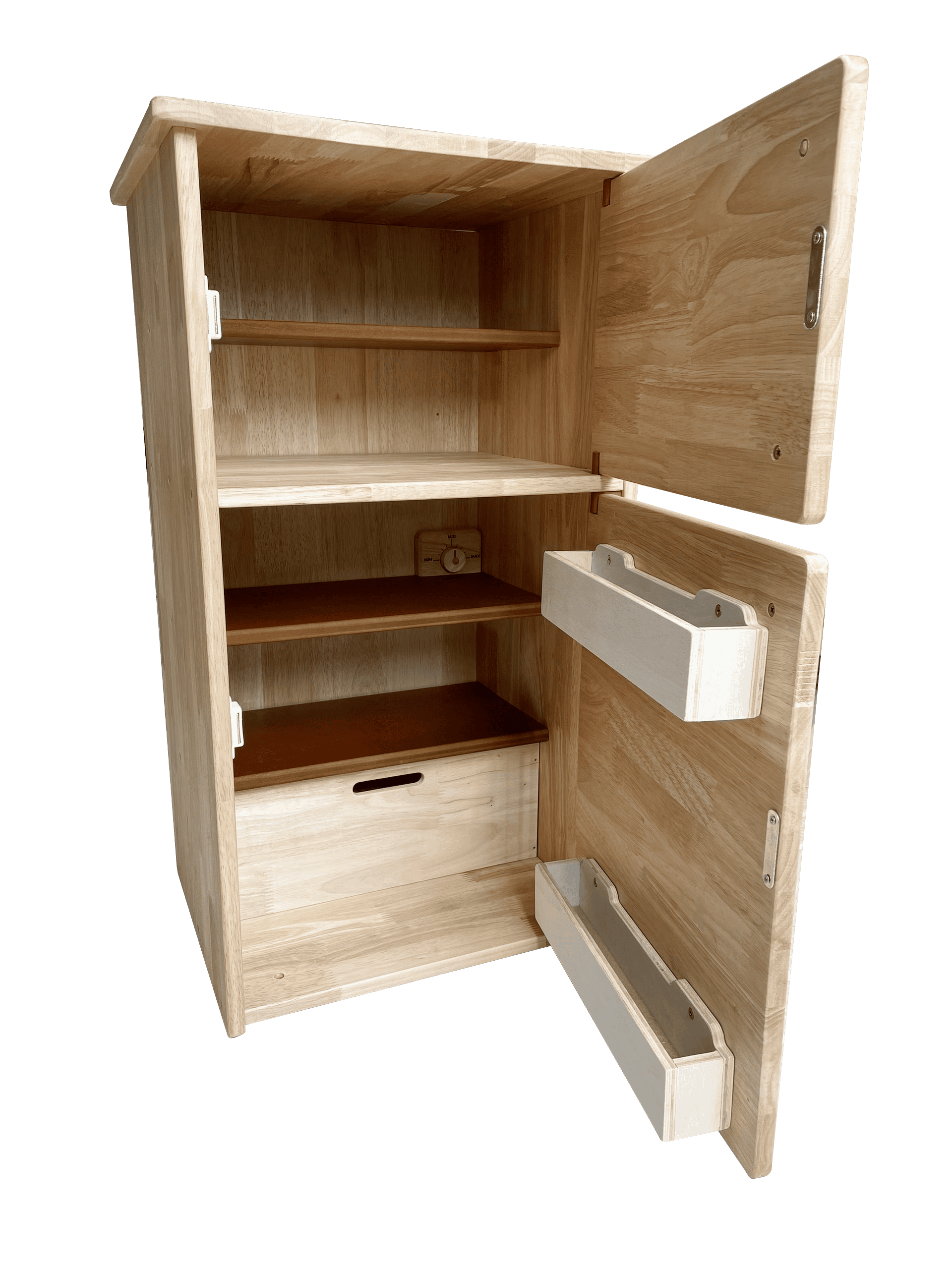 Our wooden fridge for children is a gateway to a world of creativity and a valuable addition to any home or childcare setting. Crafted with care and attention to detail, this wooden fridge opens up a realm of imaginative play possibilities that foster essential skills and enhance the play environment.